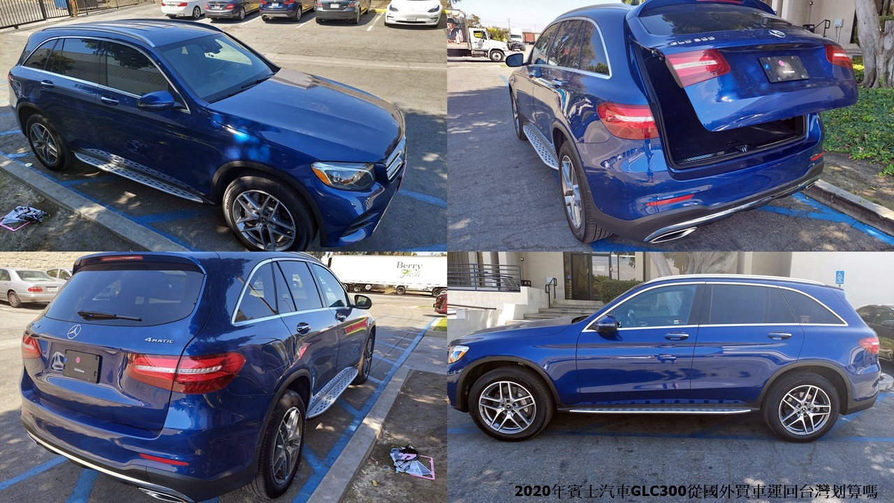 下圖藍色2020年賓士汽車GLC300從國外買車運回台灣價格划算嗎? 運車到台灣最大的費用是美國進口車關稅,用Car2TW公司網頁汽車關稅公式計算結果如下,在2025年將2020年車款運到台灣屬於5年舊車,經查閱美國中古汽車行情2020年賓士GLC300價格約2萬美金,台幣對美金匯率31:1,台灣汽車關稅約35萬台幣,第二大費用是台灣進口車輛測試費用,如果有授權報告可以折抵驗車費用會比較划算,大約只需要台幣7-8萬元,如果沒有驗車授權報告則需要約台幣50萬元,其他還有海運、報關清關、拖車、領牌等等費用、是否划算在於能否節省美國進口車關稅及車輛測試費用,Car2TW及Ship2TW同屬於同一家貨運運車公司,專營加拿大及美國買車海運運車到台灣服務,協助數千位華僑留學生運車回台節省關稅及驗車費用,想知道更多運車回台灣價格是否划算請諮詢Car2TW或Ship2TW公司。